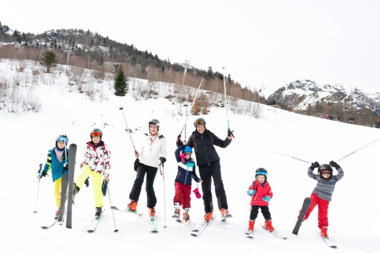 Граф и Графиня де Пари со своими пятью детьми катаются на лыжах в Пиренеях, в Ле-Монс-Д'Ольм, курорт для зимних видов спорта в Арьеже.